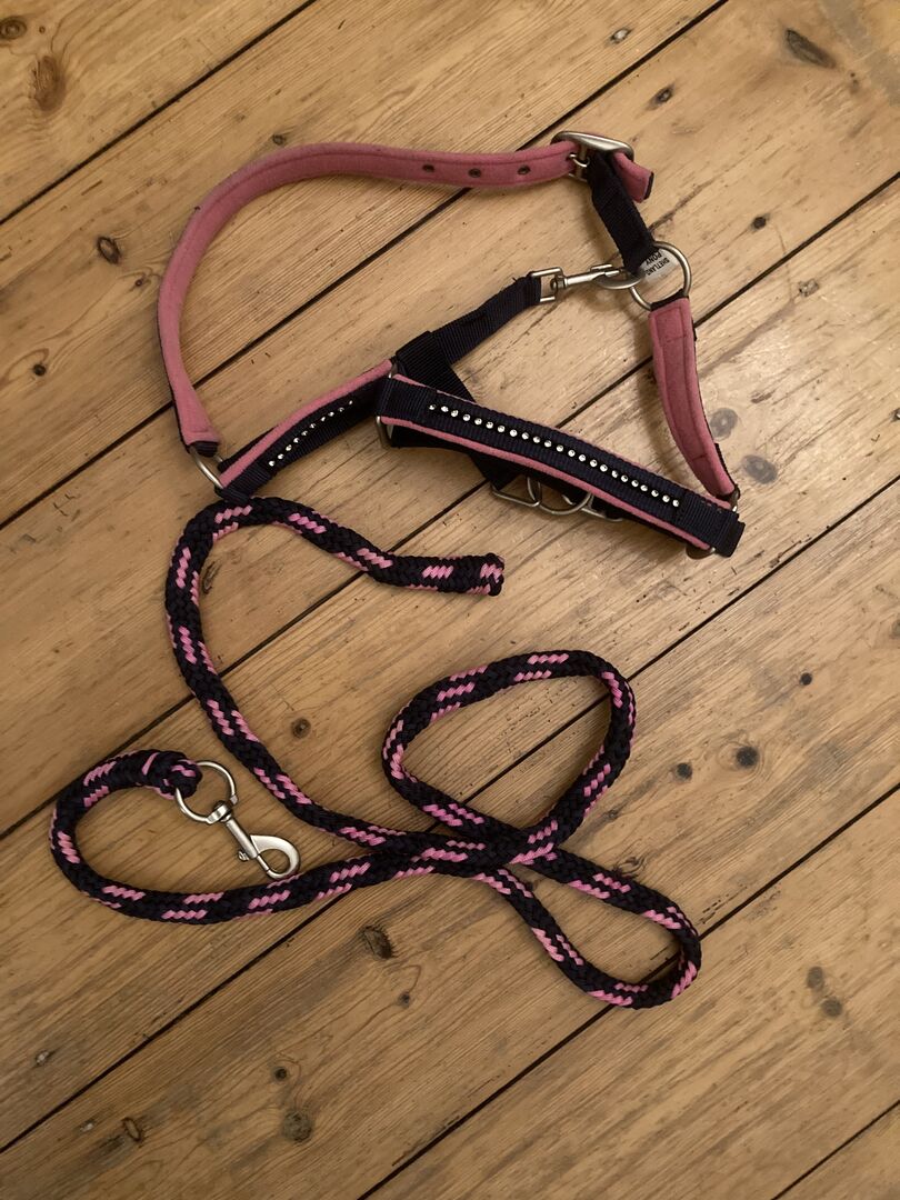 Halter Pony - Ik bied een pony halster aan met strass steentjes in roze en blauw.
