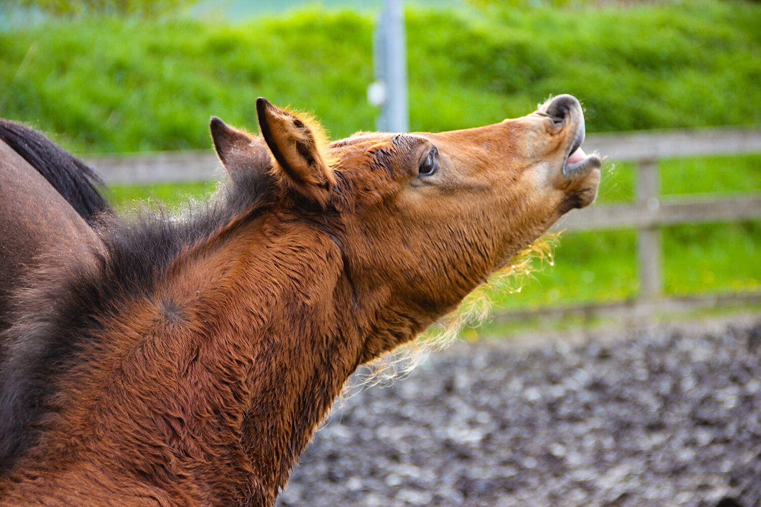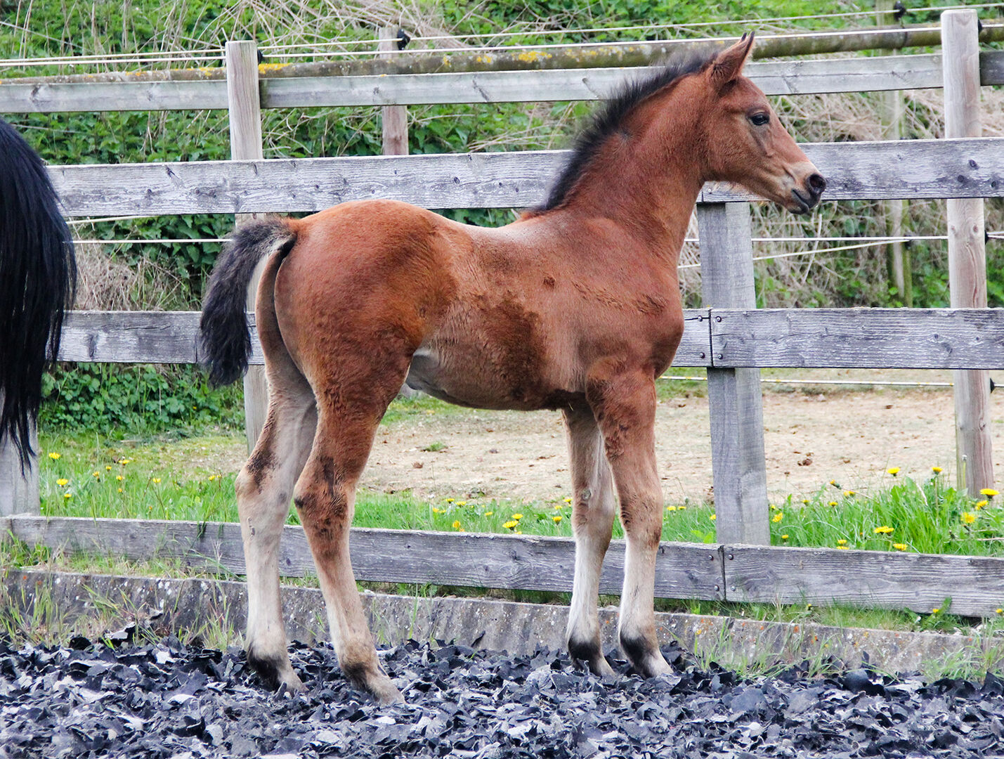 Hannoveraans veulen van Segantini x D-Online (De Niro) - Schokolino Santini is een hengstveulen dat er al staat - slim, zelfverzekerd, met een mooie bovenlijn. Hij beweegt met veel energie, lichtvoetig met veel drive.