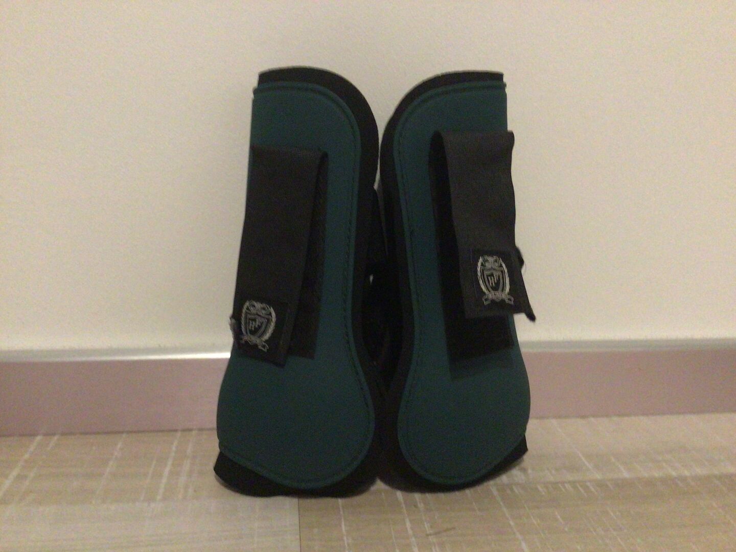 Hardschalige beenkappen voor de voorkant - Harde shell beenkappen in maat Full. Kleur: Donkergroen van Horse friends. Nooit op een echt paard, alleen op houten paarden. Als nieuw met slechts een paar krassen.
