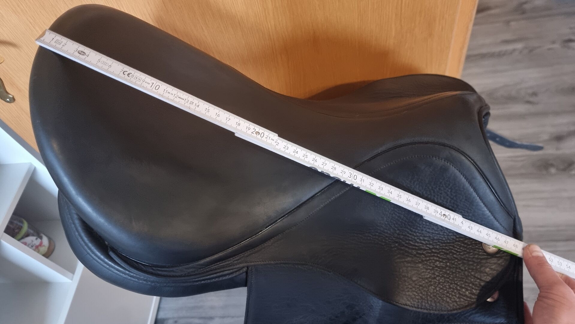 Harry Dabbs Elegant Dressuurzadel 17,5 inch - Ik bied mijn Harry Dabbs Elegant dressuurzadel aan in de kleur zwart met 17,5 inch. Het zadel is in zeer goede staat met weinig gebruikssporen, de slokdarm is in 2022 vernieuwd en vervangen door een verstelbare singel en overall aangepast aan mijn paard, het zadel is voor het laatst opgevuld in 09/23 (facturen zijn beschikbaar). De zadelmaker schatte de huidige waarde op ongeveer €1000. Het zadel paste op een warmbloed met een kleine schommel in de rug, bredere schouders en een gemiddelde schoft. De grote knierollen en de diepe zit geven de ruiter stabiliteit zonder te knellen, het leer heeft een uitstekende grip, zodat het zadel de ruiter ook een goede houvast geeft in het terrein en over kleine gymnastische sprongetjes. Het zadelnummer en de afmetingen vind je op de foto's. De zadelhoes is inbegrepen.