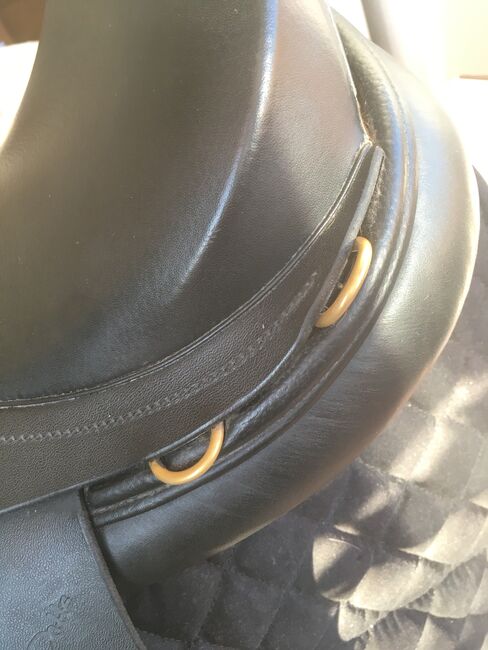 Het zadel heeft een zitmaat van 17,5" en een kamerbreedte van MW (Medium Wide). De panelen zijn gevuld met wol en kunnen dus door de zadelmaker op maat worden gemaakt. Het is ongeveer een jaar gebruikt als tweede zadel naast een dressuurzadel en is daarna niet meer gebruikt. Het zadel is dan ook weinig bereden en verkeert in zeer goede staat. Het zadel heeft ook praktische oogjes voor zadeltassen of andere accessoires en is ideaal als veelzijdig allroundzadel voor cross-country, dressuur en springen. Bijzonderheden: - Merk: Harry Dabbs - Model: Job HD GP - Zitmaat: 17.5" - Kamerbreedte: MW (Medium Wide) - Wollen paneel (aanpasbaar) - zeer goed onderhouden staat - oogjes voor zadeltassen
