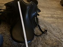 Hennig ASP 17,5 inch - ASP, 17,5 inch, 3/4 knierollen met lakleren halvemaan. Het zadel is net nagekeken door een zadelmaker van Hennig. De krassen op de foto zijn gemaakt tijdens de verhuizing, het zadel is nooit gevallen.