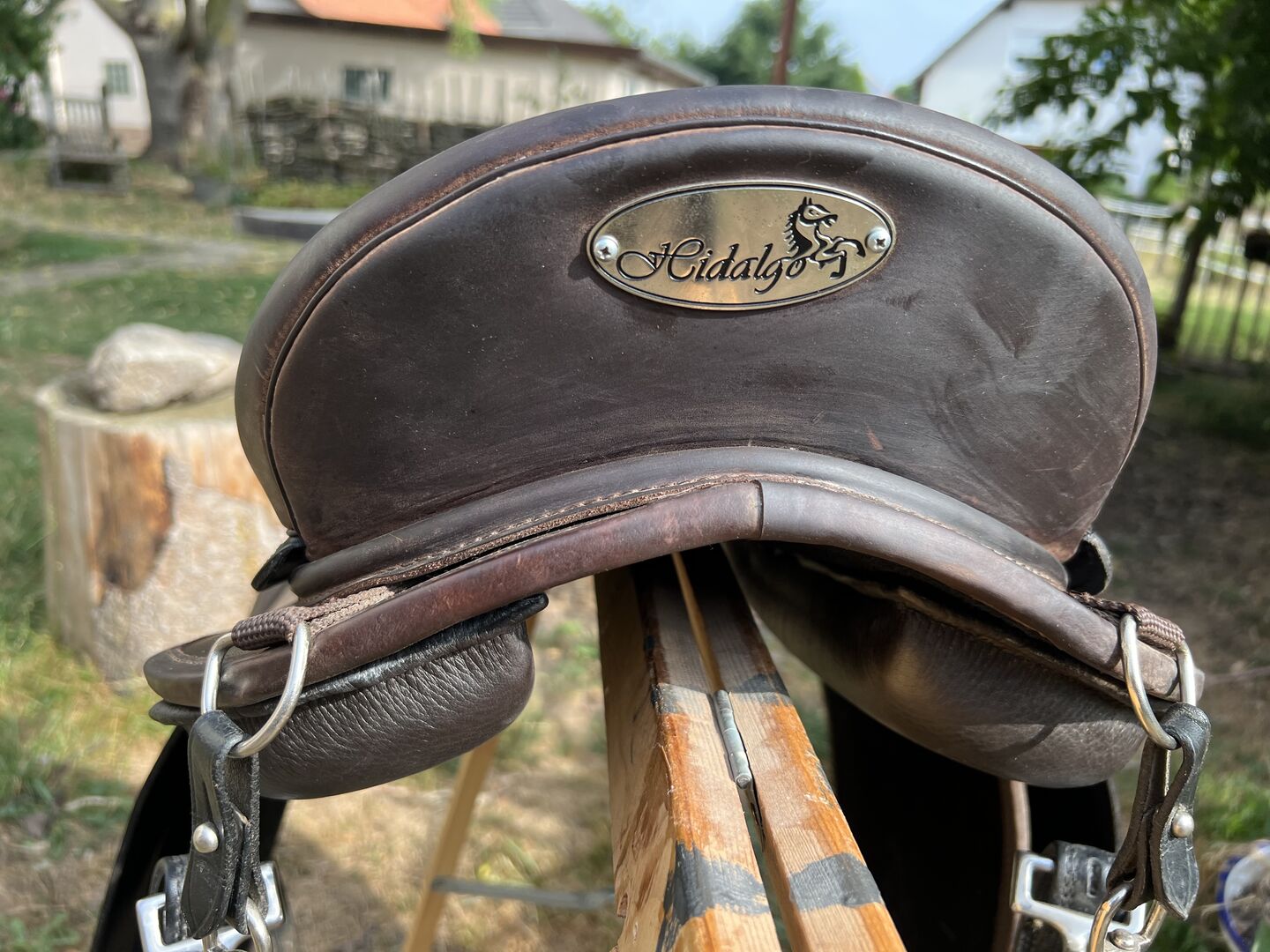 De zadelmaat is 18", maar Hidalgo zadels zijn altijd iets kleiner, zo'n 17 tot 17,5". Tot nu toe ligt het zadel op een IJslands paard van 1.31 met een zitvlak van ongeveer 47 cm.