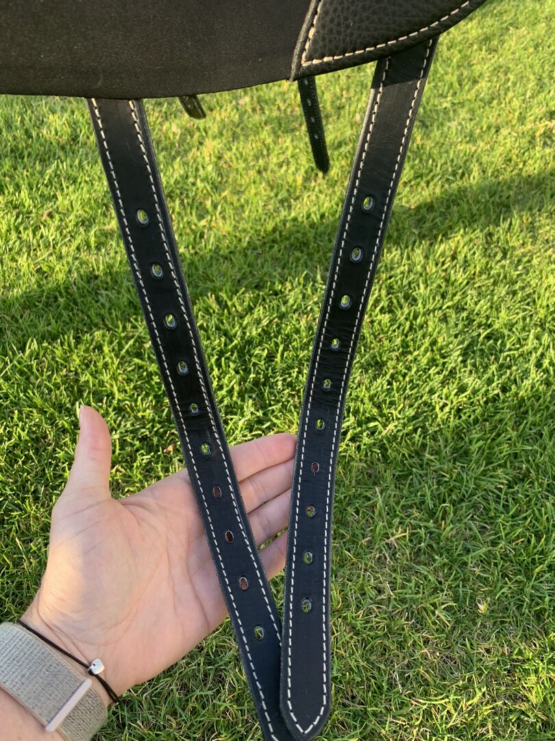 Lederen boomzadel Malaga Special als nieuw te koop. Heeft ongeveer 5x op het paard gezeten en is nog niet tot rust gekomen. - Zitmaat 33 cm - slokdarmlengte 42 cm - Lengte van de zadelklep: ca. 57 cm - Kleur van het leder: zwart, zitting taupe - Soort leer: Nappa, glad - beige stiksels - Ringen in messing - open stijgbeugelriemen - V-singel - Klittenband knierollen - inclusief originele zadeldekjes