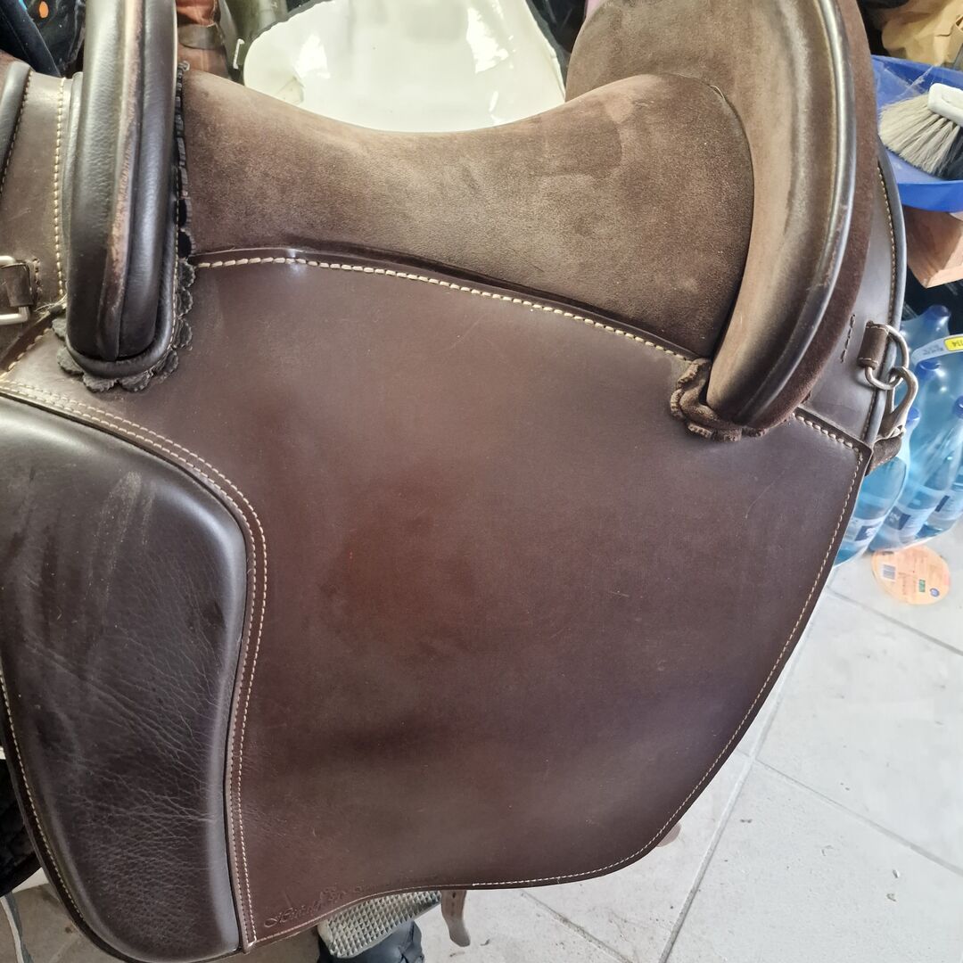 - Singel: V-singel, kruisjes voor korte singels, kan worden opengewerkt - open stijgbeugelophanging - geen slokdarm, zadel past zich aan de rug van het paard aan en groeit mee - Klittenbandpanelen: vanaf 36 cm, klittenbandgebied in ongeveer 48 cm (afhankelijk van zitvlak) - incl. klittenbandpanelen, klittenbandknierollen en zadelklep - Gemaakt in de EU van eersteklas Italiaans leer, ook verkrijgbaar in Beiers kelimleer - veel ontwerpmogelijkheden - Lengte van de zadelklep: ca. 56 cm standaard
