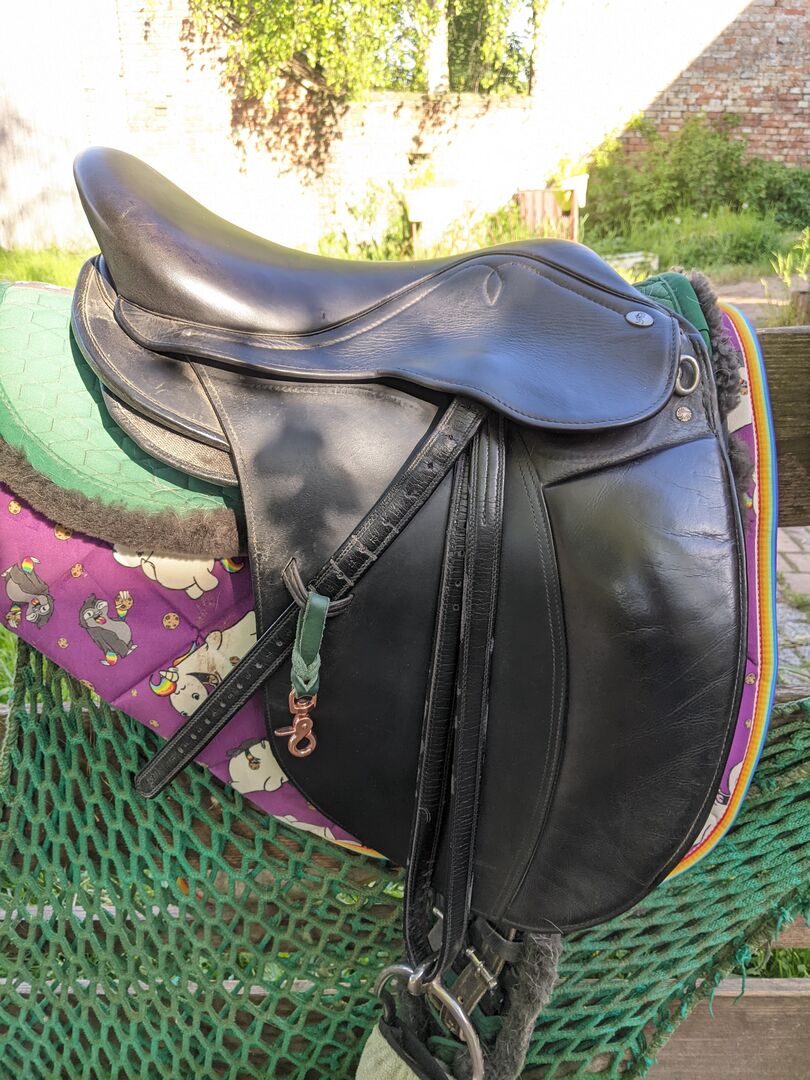 V-singel open stijgbeugelbevestiging Het zadel heeft geen slokdarmplaatje, het past zich aan de rug van het paard aan en groeit mee, waardoor het aan bijna elk paard kan worden aangepast. Klittenband knierollen