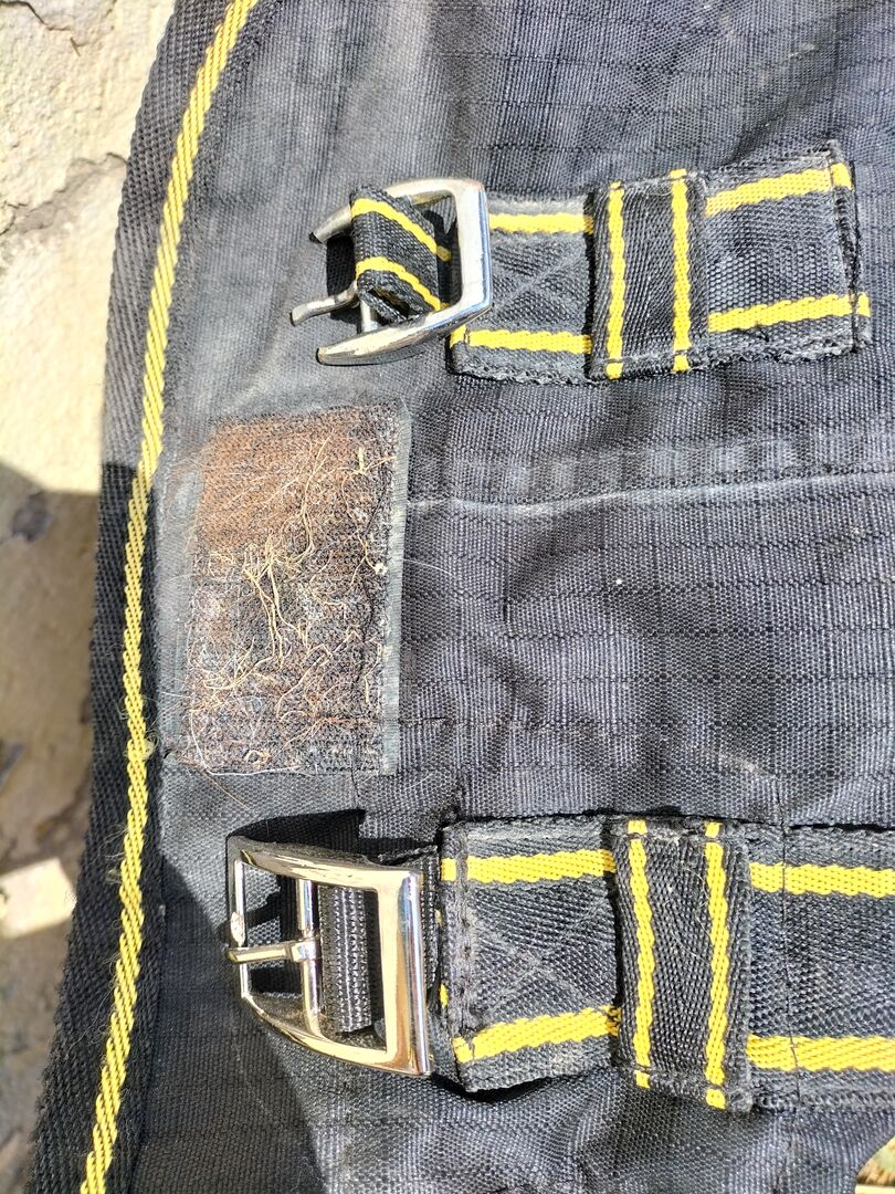 Highneck Outdoor Deken 135 100g *één borstgesp defect*. - Gebruikte Highneck outdoor deken ruglengte 135 met 100g vulling. Deken is ongewassen en één borstsluiting is defect. De onderste is al vervangen, kosten ca. 7 euro bij Vogt (plus wassen).