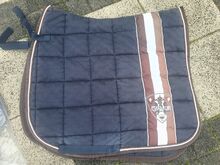 - een ongebruikt zadeldekje van Eskadron, Velvet Big Square in VS, kleur duifblauw. Helaas heb ik geen geschikt springzadel meer. - blauwe slobkousen H1 van Gera, 1 paar, nieuw - donkerblauwe slobkousen van Gera, 1 paar, nieuw - donkerblauwe slobkousen met imitatiebont en glitters van Busse, nieuw maat L - Big Square DL donkerblauw/bruin, vaak gebruikt, de kleur is vervaagd en er is slijtage in het singelgebied - Set van 4 blauwe bandages van Eskadron, warmbloed, gebruikt. Helaas niet helemaal schoon. De tas is helaas beschadigd.
