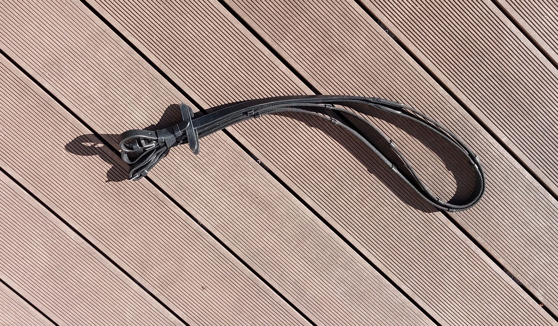 De teugels zijn verweven met rubber voor extra grip en controle.