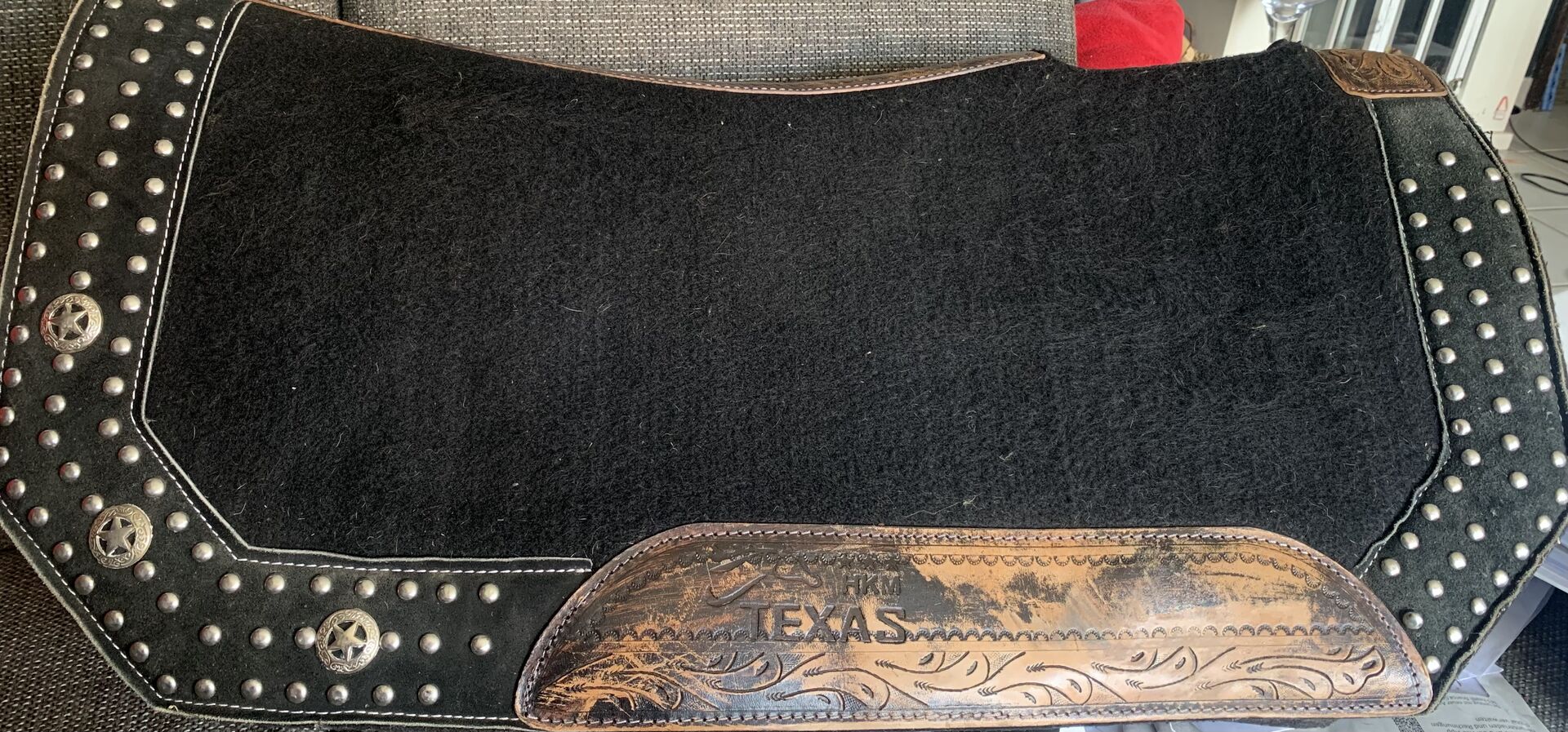 HKM viltkussen - Ik verkoop mijn geliefde HKM viltkussen. Omdat ik mijn westernzadel niet meer kan gebruiken, is deze nu ook te koop. De onderlegger heeft een paar nukken, één klinknagel ontbreekt, maar dat valt niet op. Het vilt aan de binnenkant laat ook een beetje los, maar dat heeft geen enkele invloed. Aangezien dit een particuliere verkoop is, is er geen garantie of omruiling. Als u de verzendkosten betaalt, kan de onderlegger ook naar u worden verzonden.