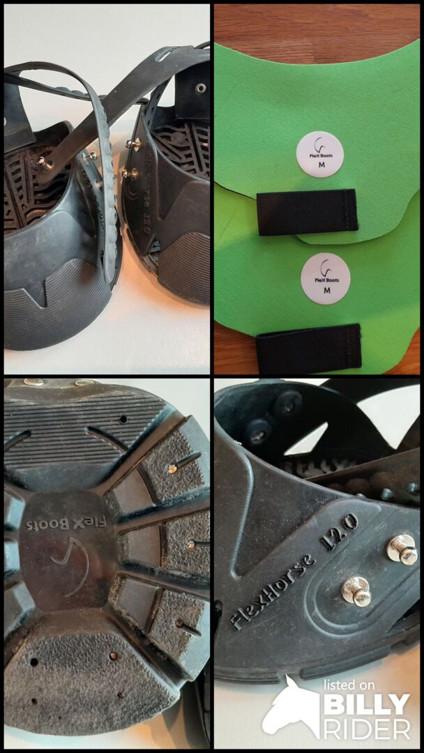 Hoefschoenen FlexBoots maat 120 incl. nieuwe neopreen veters neon groen - De hoefschoenen werden slechts 3-4 keer gedragen voor een korte rit en waren iets te groot. Daarom lichte gebruikssporen, zie foto's. Ze worden geleverd met gloednieuwe neopreen schoenen in neongroen en een reserve kogelriem.