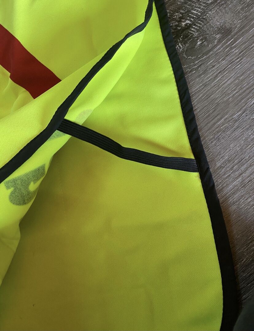 Hoge zichtbaarheid vest voor paardrijden - Ik verkoop een nieuw vest met hoge zichtbaarheid voor het rijden op drukke wegen voor een betere zichtbaarheid van de ruiter. Het is nog nooit bij mij gebruikt en is dus in absolute nieuwstaat. Maat is XL, maar kan ook met kleinere maten gedragen worden, want jassen zijn toch wat volumineuzer. Het heeft twee elastieken banden aan de rand die het gilet bijeenhouden en het ook wat elastischer maken in de breedte. Als je een beetje talent hebt, kun je zeker andere banden maken, zodat hij ook in grotere maten past. Het is gekocht bij Krämer.