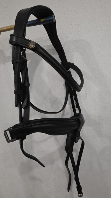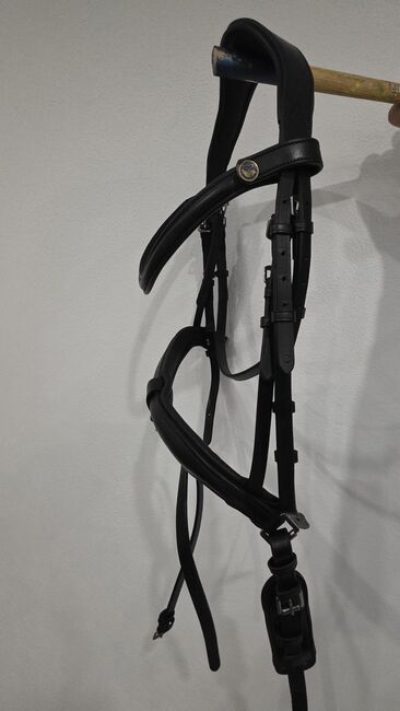 Snaffle wordt verkocht met de standaard frontriem in leer, niet zoals op de eerste foto.