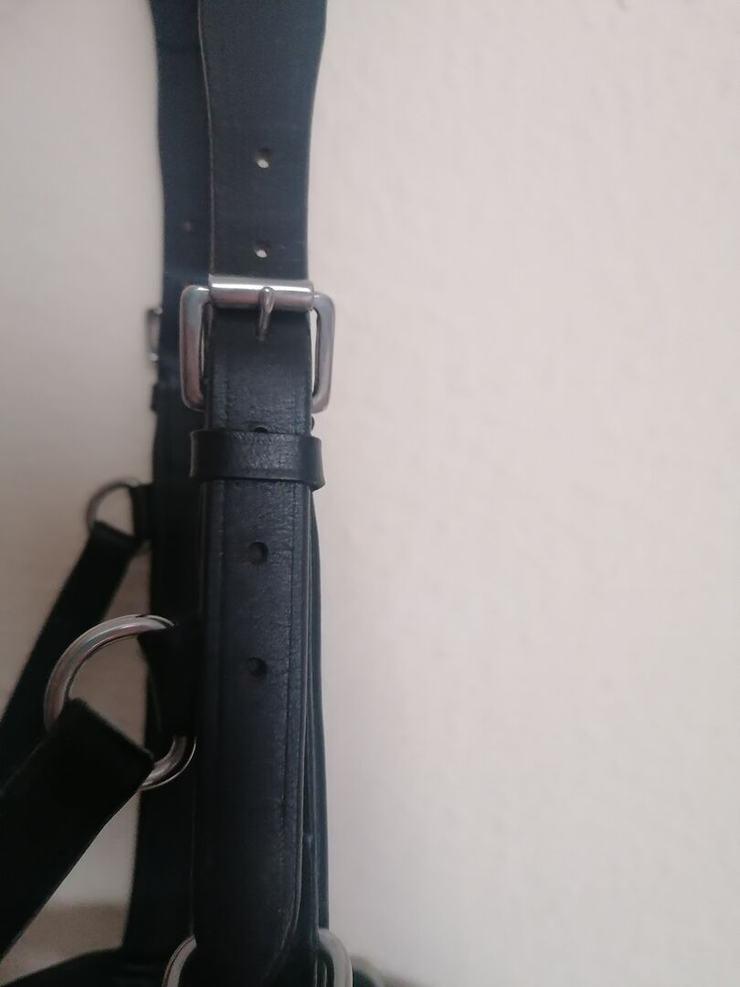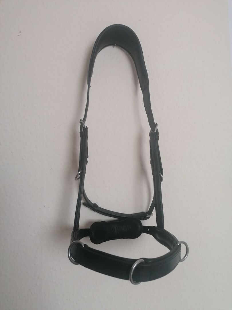 Hoofdstel Kaptoom WB - Ik verkoop mijn zelden gebruikte Bridlery kaptoom in de kleur zwart met frontriem in de kleur champagne inclusief de bijpassende bitriemen. De kaptoom is in de maat warmbloed. Hij wordt alleen verkocht omdat hij mijn twee paarden niet perfect past. Hij is in goede, bijna perfecte staat, de enige kleine oneffenheden die ik kon vinden zijn te zien op de laatste drie foto's. Het is ook mogelijk om de kaptoom zonder frontriem te kopen.