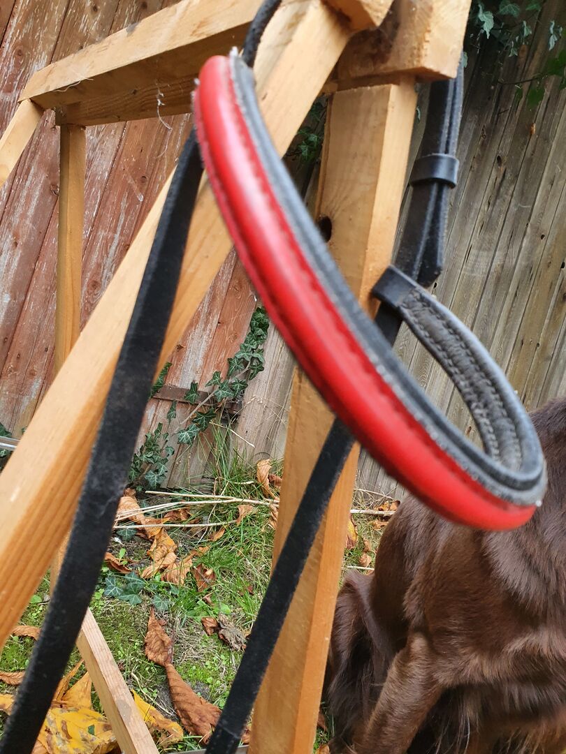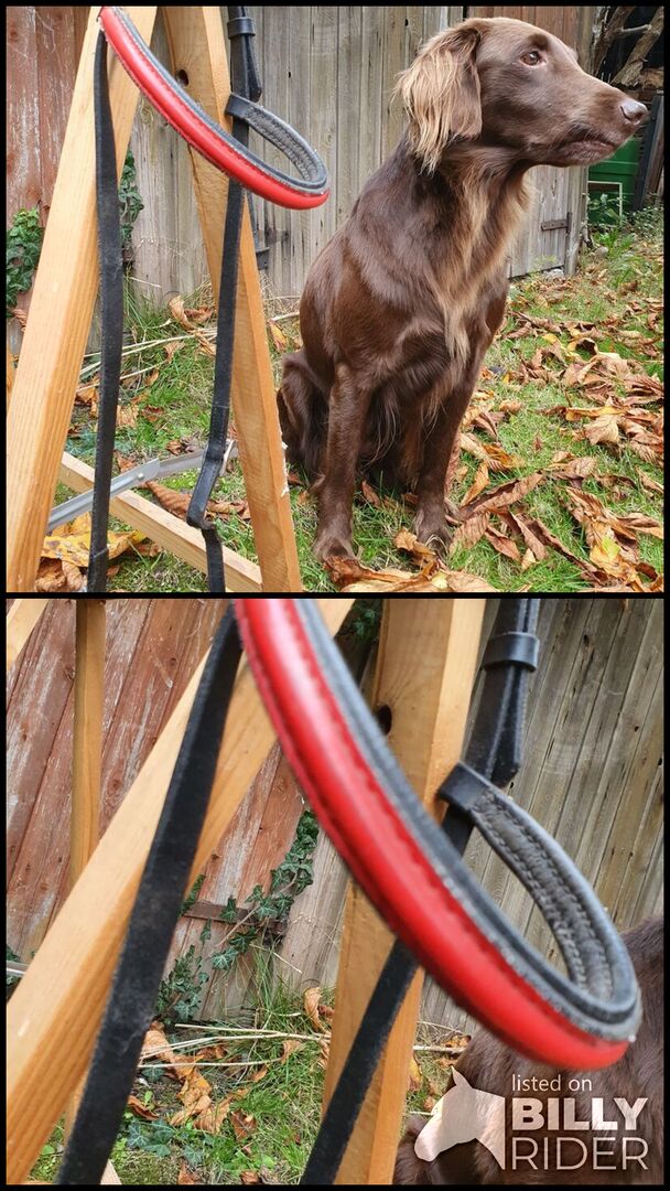 Hoofdstel + Voorhoofdsriem - Hoofdstel met rode frontriem te koop in goede staat.