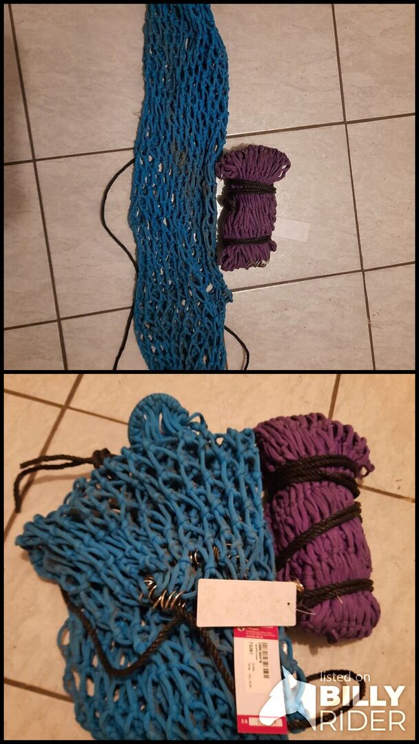 Ze zijn nog niet gebruikt. Maar ze zaten in het hooi. Beschrijving van de fabrikant: Het grote hooinet is een fijnmazig, zeer stabiel voedernet met ringen. Met een maaswijdte van ca. 50 mm is het hooinet bij uitstek geschikt voor het voeren van hooi op maat van de soort. Het net wordt aan de bovenkant gevuld en gesloten door het koord waaraan het hooinet is opgehangen aan te spannen.