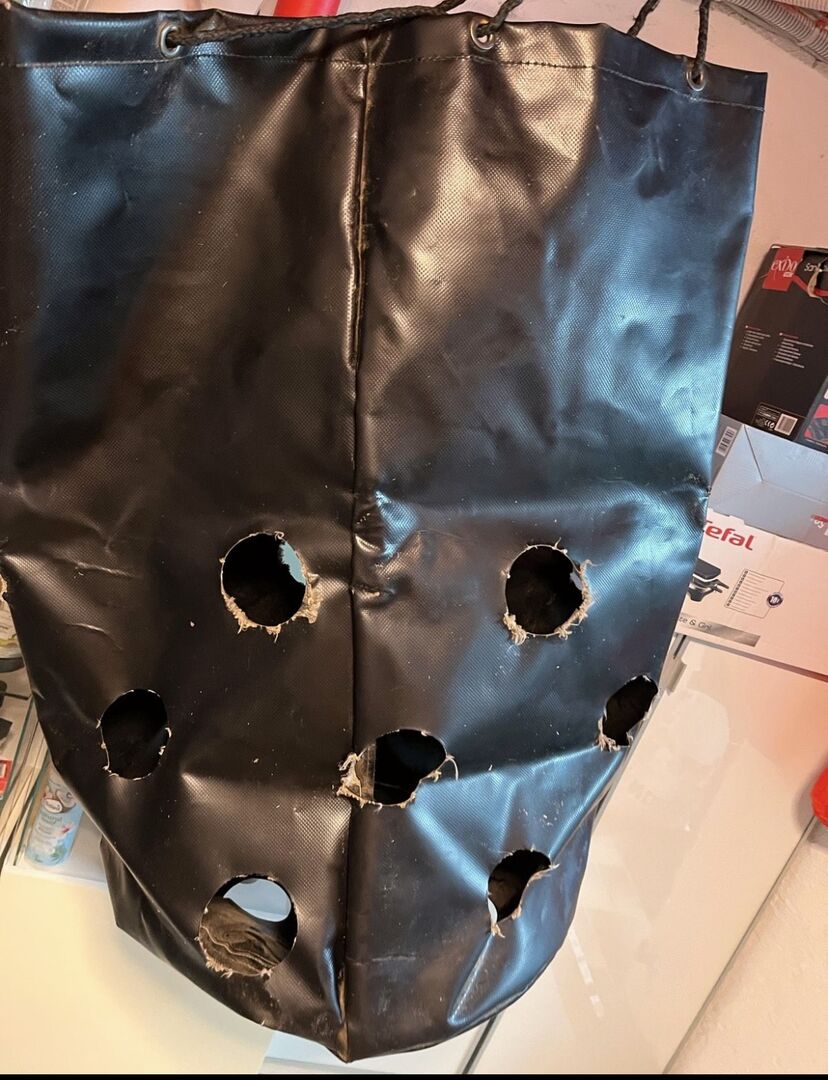 Gebruikt maar niet defect. Een beetje "gerafeld" bij de gaatjes. Is ongeveer vier maanden in gebruik geweest. Zeer robuust materiaal.