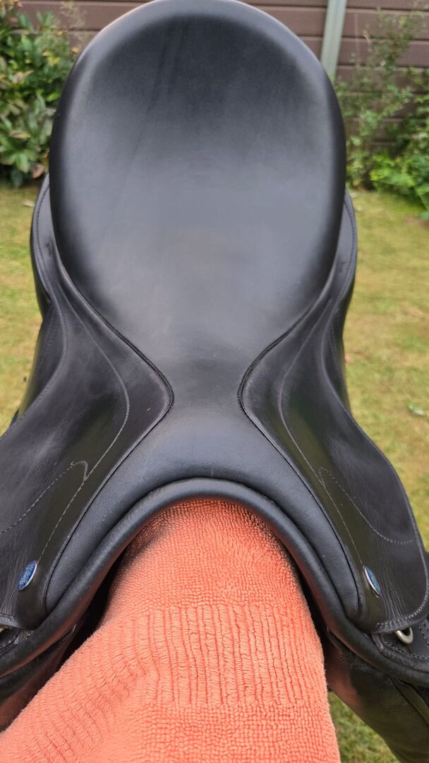 Horse Star Revolution dressuurzadel 17,5 - Wij verkopen ons zeer goed geconserveerde dressuurzadel van HorseStar, model Revolution, maat 17,5_K1/3 van 01/19. We hebben het tweedehands gekocht in 11/20, maar het is maar 1,5 jaar in gebruik geweest tot onze merrie met pensioen ging wegens ziekte. Sindsdien ligt het in onze kelder en omdat het helaas niet past bij ons jonge paard, dat nu aan zijn opleiding tot rijpaard begint, willen we het graag verkopen. Het zadel is altijd goed onderhouden en heeft alleen normale gebruikssporen. Er is altijd een bekwame zadelmaker bij betrokken geweest gedurende de 1,5 jaar van gebruik. Het garantiebewijs is aanwezig en het zadel heeft een beschermer. Het wordt verkocht zonder stijgbeugelriemen.