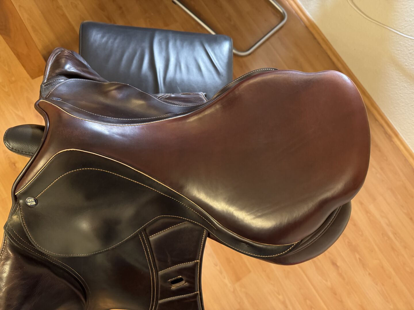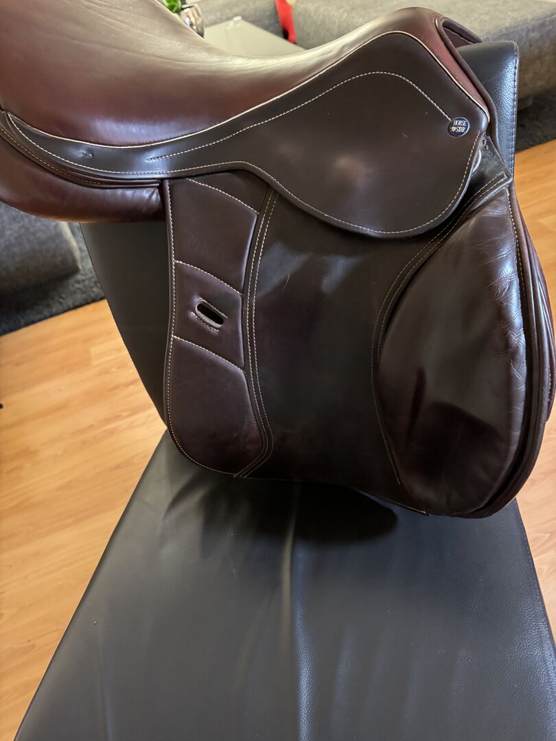 Het Horse Star Competition springzadel is een vlakke zit met verhoogde panelen (K+2). Het contactoppervlak is iets verhoogd en is daardoor ook geschikt voor paarden met een hogere schoft. Het is ook meer geschikt voor paarden met een rechte rug en weinig schommeling in de bovenlijn. Het is gemaakt van bruin premium zacht olieleer en heeft witte contrasterende stiksels.