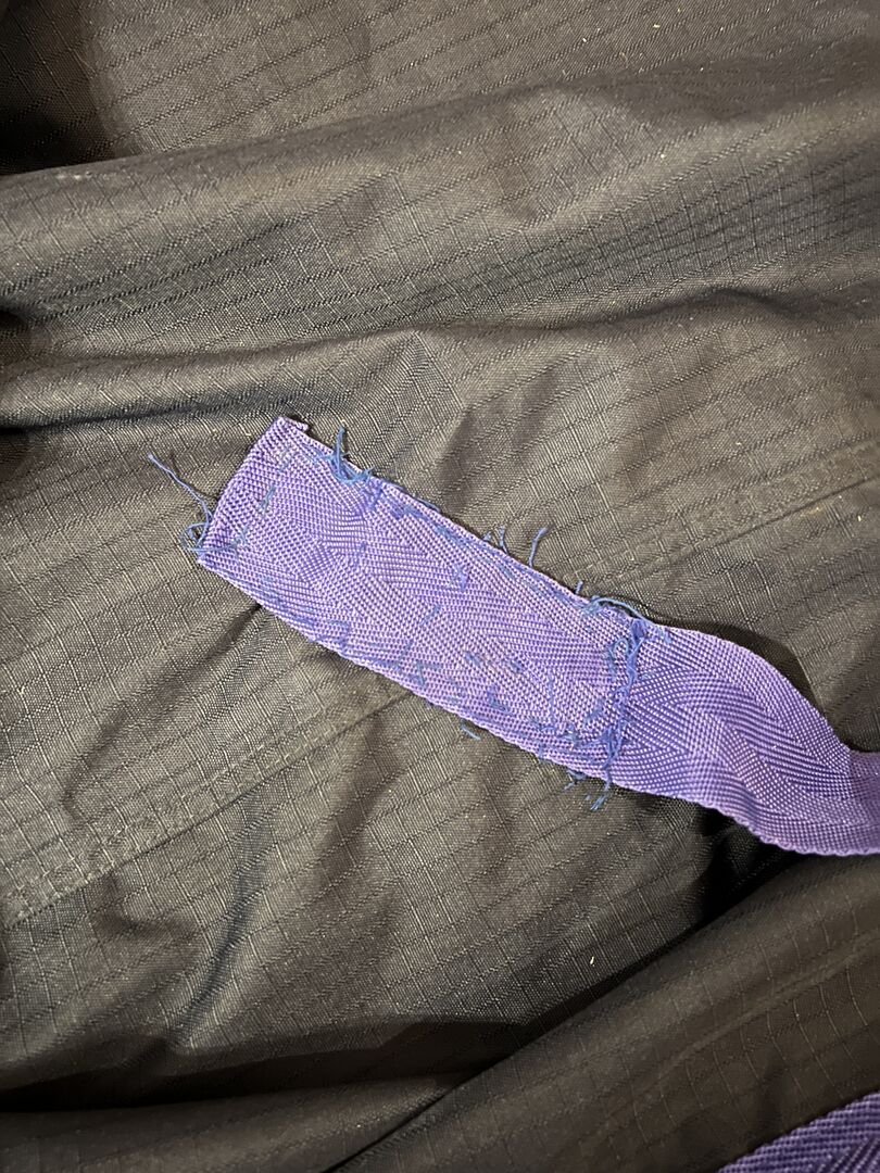 Maat: 175cm ruglengte Kleur: zwart met paarse bies en riempjes Voeding: 50g