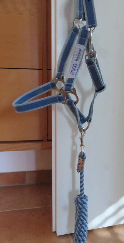 Nieuw, zeer robuust Halfter van Horseware, Gr. FULL, hergestellt aus doppeltem Nylon, mit passendem Führstrick, 2-Tone blau. NEU ohne Etiket. Er zijn ook een paar bordeauxblauwe fleecebandjes van Busse, in goede staat, ook WB-Grösse. Versand als Päckchen für 4€ order versichert.