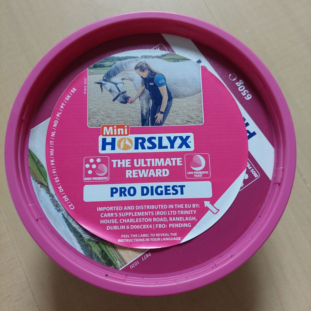 HORSLYX ProDigest likkom - Ik verkoop deze gebruikte likbak, mijn paard likte er 2 keer aan en besloot toen dat hij deze smaak niet lekker vond :)