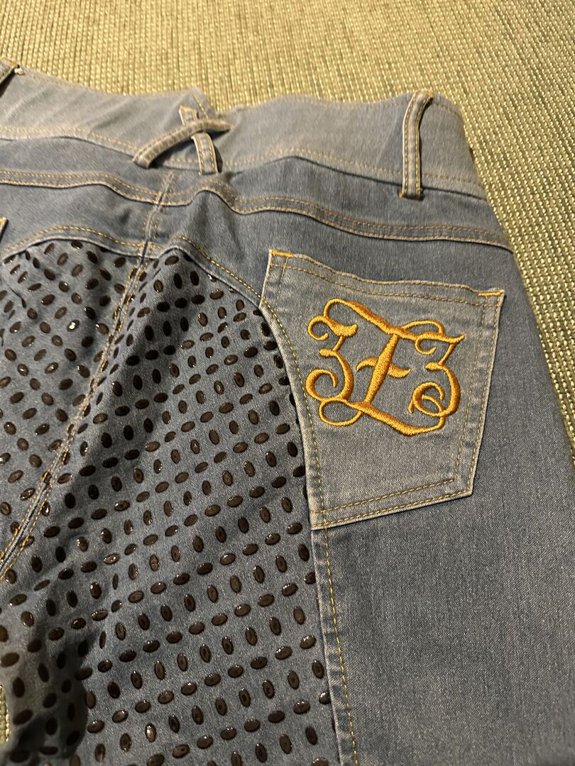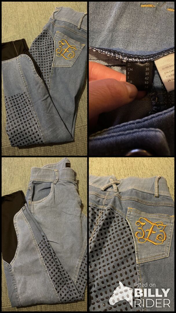 Horze Jeans Broek 36 - Gebruikte, zeer goed bewaarde rijbroek van Horze in lichtblauw met volledige greep, greep volledig intact. Elastische beenboorden. Maat 36