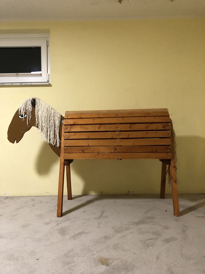 Houten paard met accessoires te koop - Hallo Samen Ik verkoop mijn houten paard. We hebben het paard zelf gebouwd en het is erg stabiel. Het is in goede staat, dus het is opnieuw geverfd, geschuurd enzovoort. Ik zou het houten paard het liefst alleen met accessoires verkopen: Daaronder een echt zadel en een echte snaffel, beide zijn ook pas schoongemaakt en ingevet en in goede staat (alleen de naad van het zadel is op één plek een beetje open). Het zadel zou te koop zijn voor ongeveer 40€ VB en de snaffle voor ongeveer 20€ VB. De zadeldekjes zijn ook te koop voor 10 of 15 €, afhankelijk van de prijs. De prijs voor het houten paard alleen begint bij 210€ en is bespreekbaar. Het materiaal voor de constructie alleen kost meer dan 250€. We hebben ook een 2 zadel in zeer goede staat dat ook bruikbaar zou zijn voor echt rijden, vraag bij interesse privé om foto's. Privéverkoop, geen geweerdienst, geen retour. Alleen ophalen. We kijken uit naar aanvragen