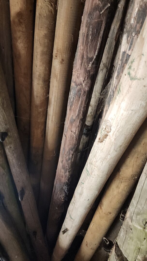 Houten palen - - Onder druk geïmpregneerd of behandeld met teer - ca. 45 stuks - 1,50 m tot 2 m lang - Diameter ca. 6 cm - allemaal geslepen - Prijs VB vanaf 5 € - Conditie zeer goed tot gebruikt - afrasteringspalen, weidepalen, paddockpalen