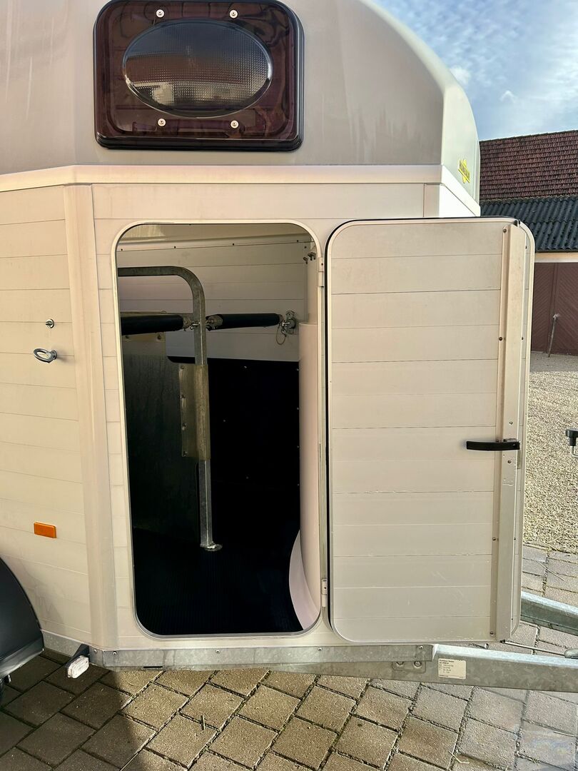 De Humbaur Xanthos Spirit Edition paardentrailer biedt niet alleen een laag eigen gewicht, maar ook een goede uitrusting voor veilig en comfortabel vervoer. Met APK tot juni 2025 en in zeer goede staat, is hij klaar voor nieuwe avonturen.