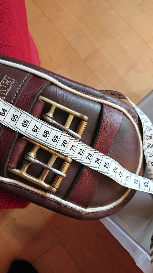 HV polo korte dressuursingel in topconditie! - Prachtige zachte, gevoerde korte singel in bruin, 70cm te koop. Past helaas niet anatomisch bij mijn paard. Huidige nieuwprijs 96€.