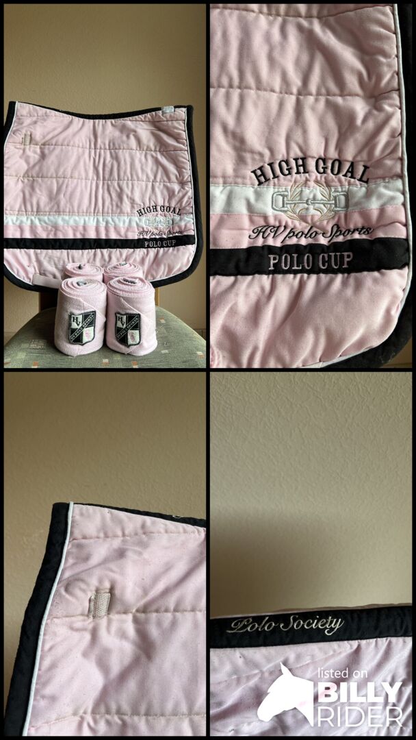 Hey, ik bied hier een roze HV poloset aan. Het zadeldek heeft lichte gebruikssporen en ik heb de lussen eraf geknipt. De bandages hebben klittenband, die nog in prima staat zijn en heel goed houden! Ik zou het geweldig vinden als deze mooie set een nieuw thuis vindt findet☺️ Eventueel kan de set ook bij mij thuis opgehaald worden;)
