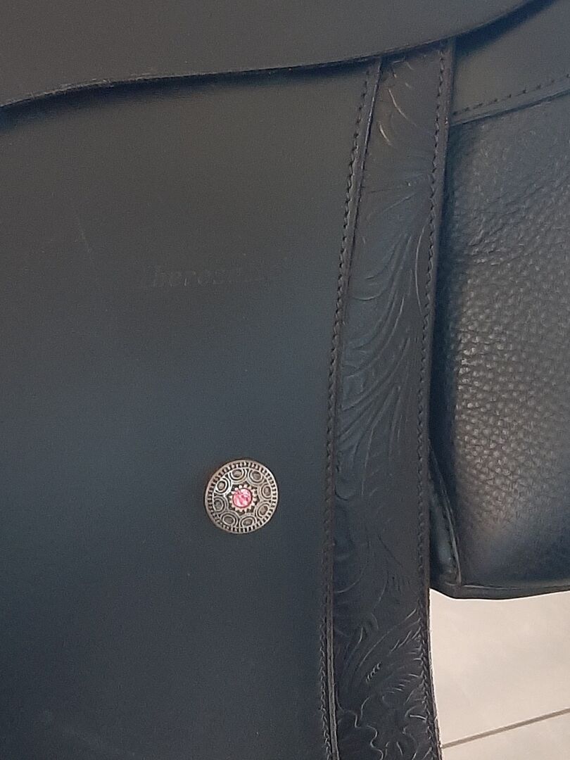 Extra details : Còrdoba Comfort - Premium lijn dressuur incl. tweedelige zadelklep, verdubbeling bij de knie, comfort pad, Amazon oplossing, Secusad systeem, borstplaat ringen, decoratieve broche, decoratieve stiksels, 191094 , Gladleer 18 zwart, 1919094, zwart, SOM01, Klinknagel met roze steen , Montana reliëf op de cantle, 20/22 Nieuwwaarde in Euro : 3'700.- Rechtstreeks aangekocht bij de fabrikant in Duitsland