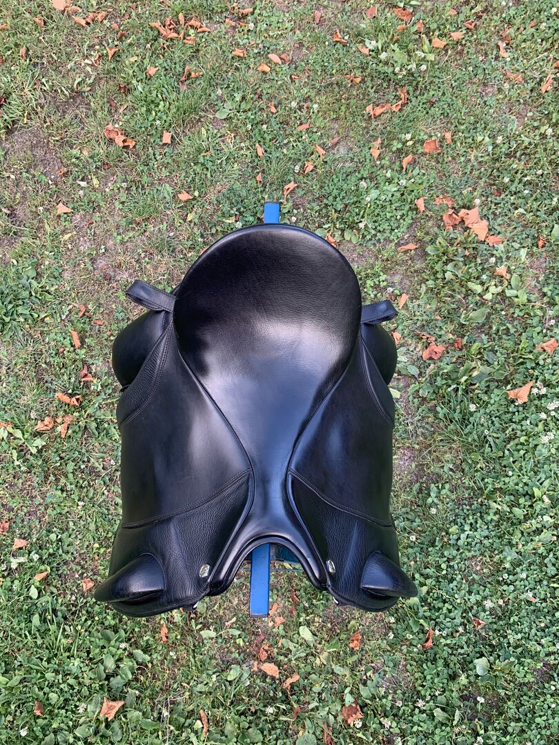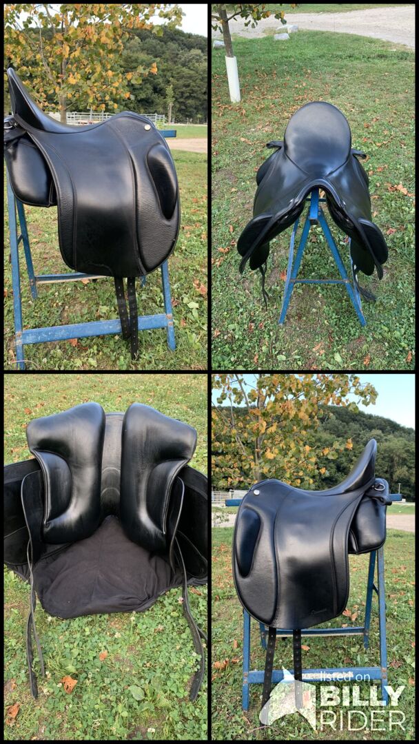 Details: - Kamerbreedte 32 (koud verstelbaar) - Zitmaat 17,5 (vrij klein) - diepe dressuurzit - kleine dijbeenrollen voor een onafhankelijke zit - beweegbare V-benen met singelband, lange riemen - breed wervelkanaal - wollen paneel met groot contactoppervlak - verborgen Amazone-oplossing - Secusad systeem - incl. zadelpasvorm en zadelbeschermer - twee extra pakringen aan de achterkant - NP momenteel € 2.890