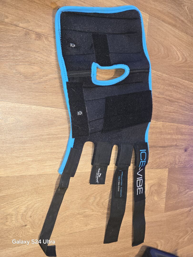 Ice-Vibe beenkappen voor spronggewrichten Full/WB - Eén keer gebruikt. Mijn paard houdt er niet van. Toch zitten er een paar paardenharen op.