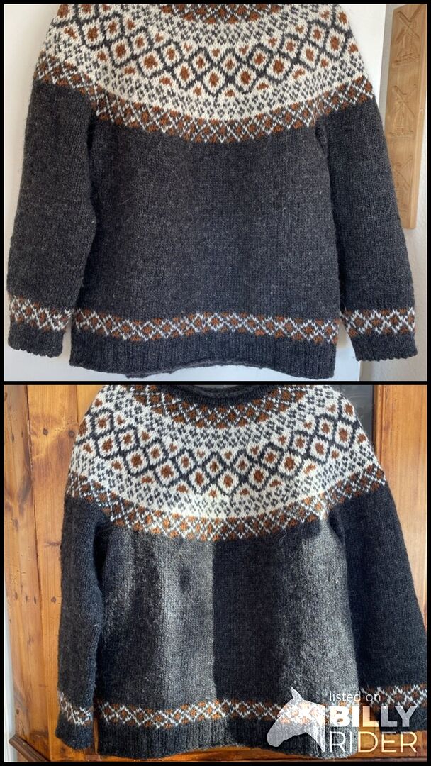 IJslandse trui - De trui is handgebreid met Istex Lettlopi wol en heeft een bijzonder ongebruikelijk patroon. Hij is er in maat S/M.