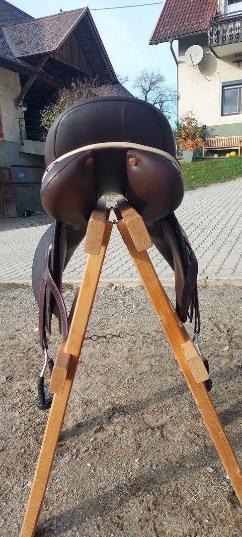 Het zadel is vorig jaar nieuw gekocht bij een zadelmaker. De breedte van de slokdarm is eenvoudig aan te passen door de slokdarmplaat te vervangen.