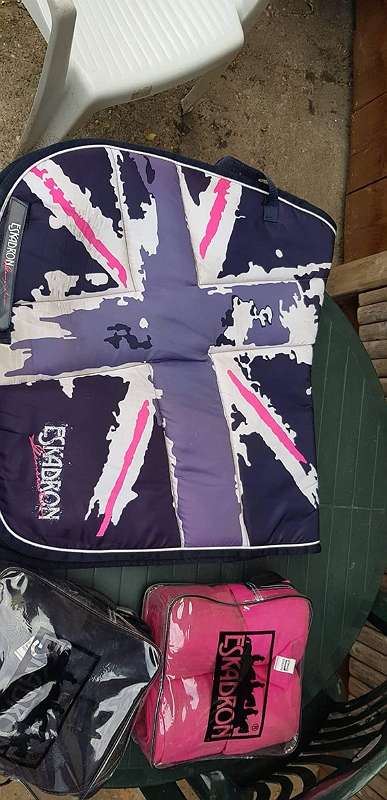 Inning liquidatie - Neem contact met ons op als u geïnteresseerd bent! Alle zadeldekjes zijn DL tenzij anders vermeld. ShowMaster verband-nieuw- 5€ Eskadron/Nici Pistache zadeldek -gebruikt- 25€ Eskadron IjsblauwZadelpad - gebruikt- 40€ Eskadron verband crème -nieuwe- 15€ Eskadron Touw RESR- nieuw- 5€ Eskadron verbandzak RESR- 5€ Aruba Blauw van Klarwunde by Eskadron- als nieuw - 25€ UK Set (zadeldek, bandages en deken 155)- graag gebruikt - 90€ Benzine door 4Horses - 2x op paard - 20€ Poison Green van Klarwunde by Eskadron + bandages - als nieuw - 30€ Hibiscus kompres van Eskadron + bandages- graag gebruikt - 35€ Paisley van Eskadron in VS- graag gebruikt - 30€ Youngstar door Eskadron - nieuw- 45€ Petrol by Eskadron VS+ bandages- nieuw - 55€ Rood van Eskadron VS + bandages- als nieuw - 35€ Dus totaal pakket 400€ individueel zou het meer dan 450€ zijn.