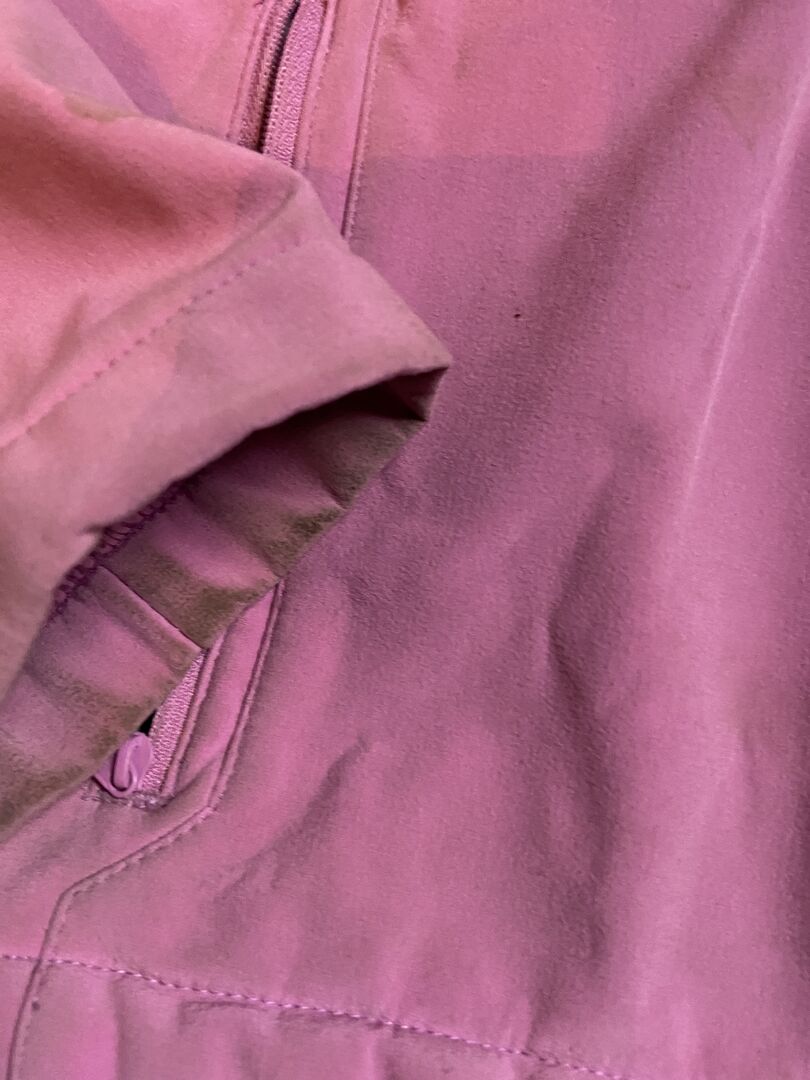 Pink soft shell jacket size 10. Has been used a few times but been stored in the tack room under other jackets so I had forgot about it until a good clean out. Has some marks which may wash out or not, see photos.