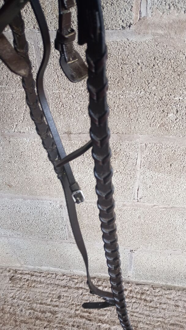 Beautiful as new brown Havana leather jaguar bridle with non slip platted ranes