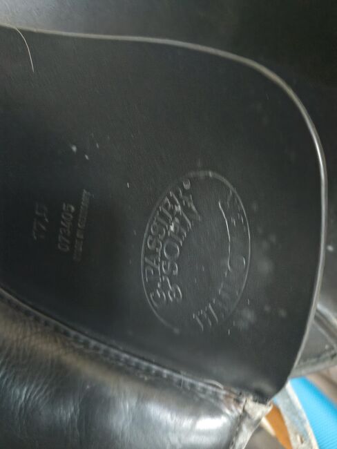 saddle for gaited horse ( Passier & Sohne) by Julie Christiansen. 17.5 inches. It's filled with wool , not foam. (Info via Google using the search term "Der Gangenpferdesattel JC von Passier")