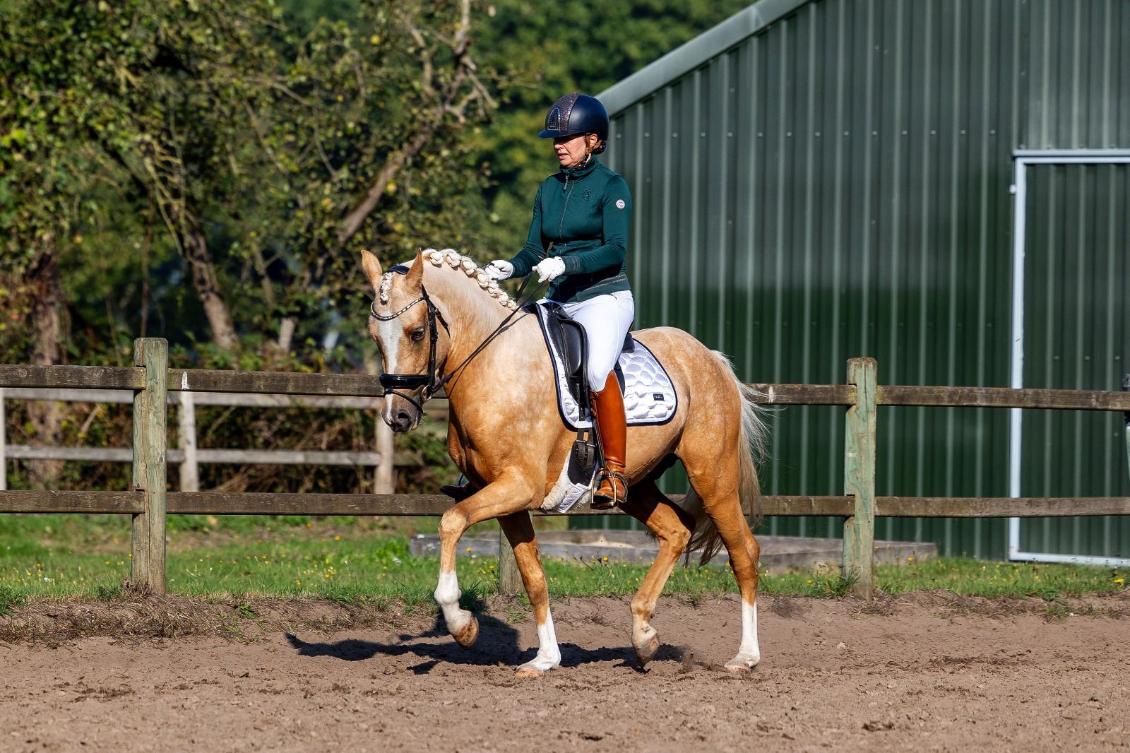 HarDeze 3-jarige Palomino-ruin imponeert over de hele linie: met bovengemiddelde basisgangen (9 voor draf, galop en vrijspringen op de keuring), een krachtige FEI-afstamming en een uitzonderlijk rustig, eerlijk karakter.