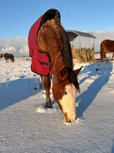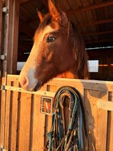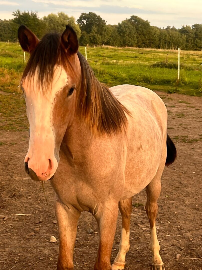 Jonge Quarter Horse merrie met een zacht karakter en veel potentieel - Plaats: 18182 Rostock Boons Shining River is een jonge Quarter Horse merrie met Half-Quarter Horse papieren, geboren op 23.04.2024. Ze heeft de kleur Bay Roan Overo, is momenteel ongeveer 149 cm groot en zal naar verwachting een uiteindelijke stokmaat van minimaal 155 cm bereiken. Ze imponeert met haar harmonieuze bouw, correcte houding en veelbelovende verhoudingen en is een echte blikvanger. Naast haar aansprekende uiterlijk maakt ze vooral indruk met haar lieve, mensgerichte karakter. De merrie is rustig, ontspannen en ruimdenkend, heeft een zacht en vriendelijk karakter, is braaf, ongecompliceerd en leert heel snel. Boons Shining River is goed gemanierd en is altijd prettig in de omgang. De merrie is gezond, ingeënt en ontwormd volgens haar leeftijd. Ze kent de box met weide en groeit in alle rust op in de beste omstandigheden. Ze krijgt hoogwaardig opfokvoer en goede mineralen, wat haar ontwikkeling optimaal ondersteunt. In haar opleiding tot nu toe kent ze al het veulen-ABC, gaat ze als handpaard de wei in, kan ze zonder problemen beladen worden en trailers rijden. Ze is gewend aan de omgang met mensen en verschillende alledaagse situaties. Ze heeft een goede springafstamming aan vaderskant (vader: Redwhiteandblue Boon), gecombineerd met zeer goede rijkwaliteiten aan moederskant. Dit maakt haar geschikt voor zowel sport en competitie als vrijetijdsgebruik. Boon's Shining River is een jong paard met hart en toekomst en is ideaal voor iemand die een jong paard vanaf het begin wil begeleiden, aanmoedigen en een echt partnerschap wil opbouwen. Ze is een veelbelovend jong paard voor zowel ambitieuze ruiters als voor liefhebbende vrijetijdsruiters.