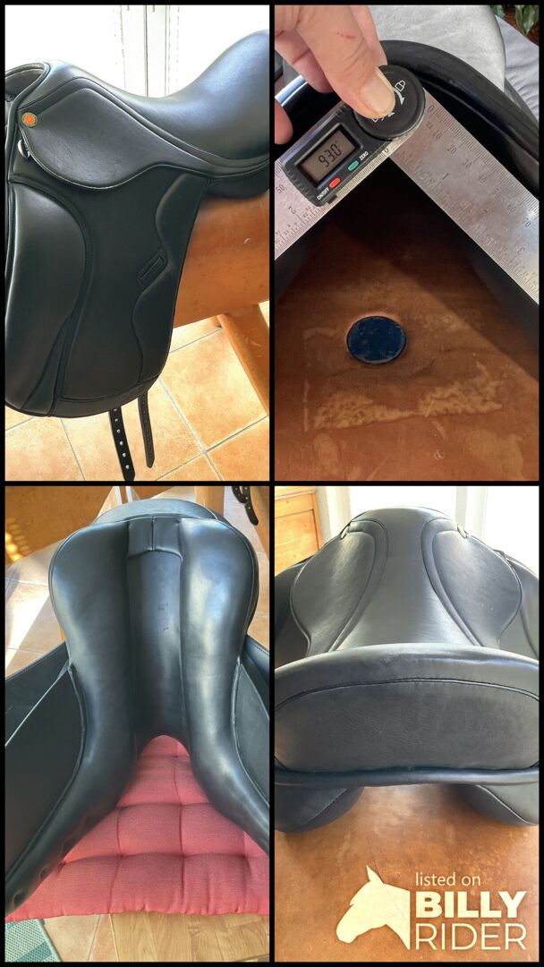 Kamerbreedte: koud verstelbaar Kleur: zwart Vulling: wol Staat: nieuw Leer: gedubbeld kalfsleer Pasvorm: past goed op korte, rechte tot licht gebogen paardenruggen met middelhoge schoft Kussen: Wigpaneel Crupper: verstelbare klittenband crupper, medium maat Zit: extra diep