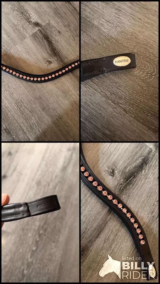 Kantrie Voorhoofdsband Roze Vol/WB - Te koop hier een wenkbrauwband van Kantrie in mint conditie. De maat is vol/warm bloed. De steentjes zijn roze en allemaal nog aanwezig. De band is altijd verzorgd geweest en het leer is zacht. Ik heb het bij het hoofdstel gekregen, maar ik hou niet van roze, dus iemand anders mag het houden gelukkig. De vorm van het riempje is licht gebogen.