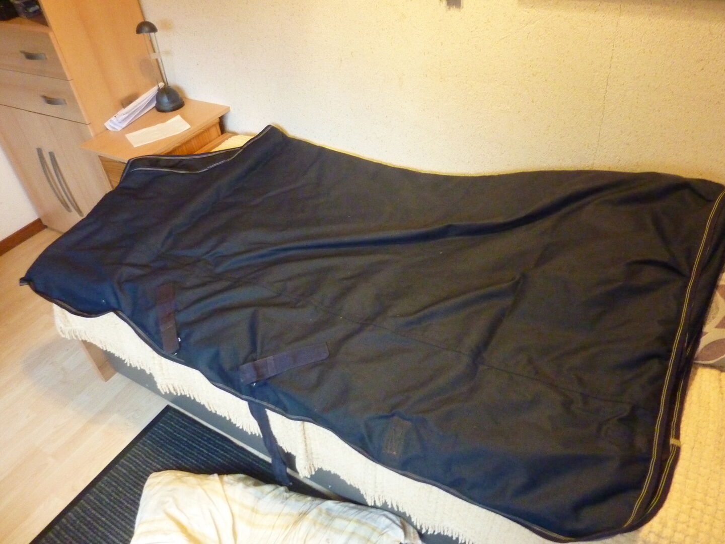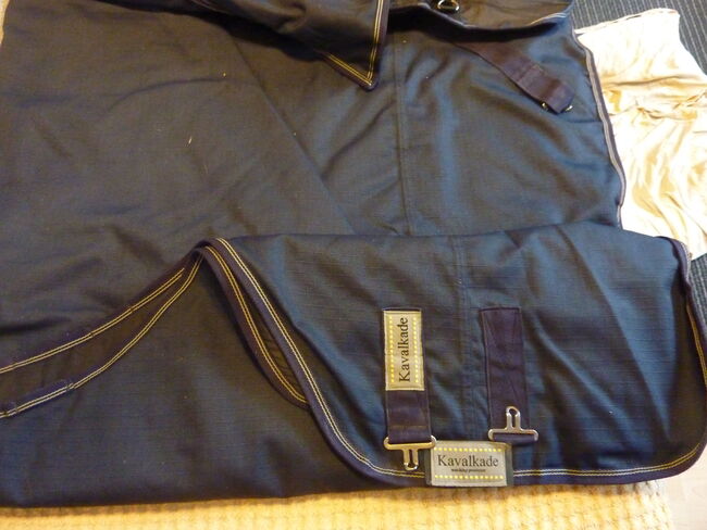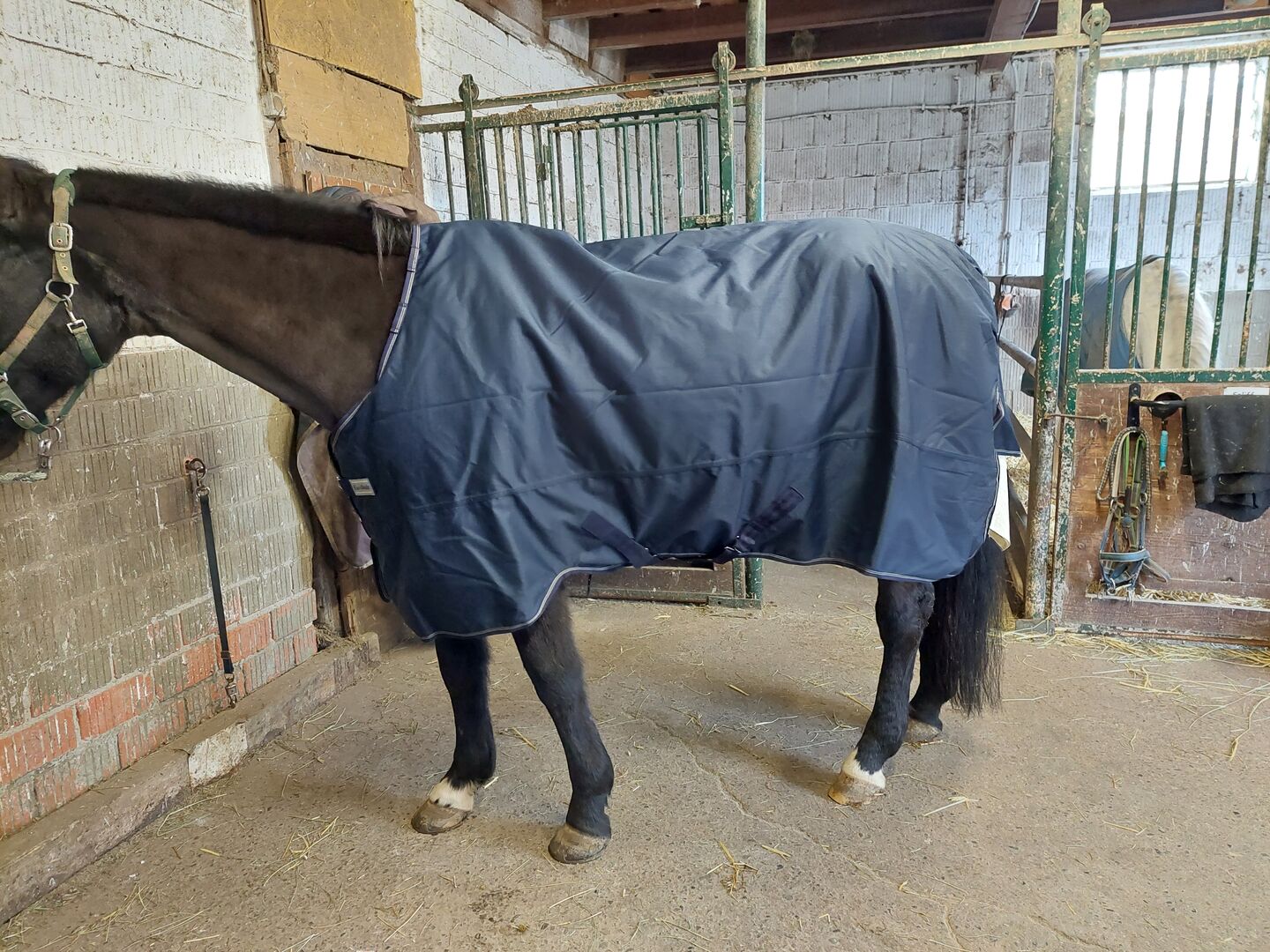 Kavalkade Outdoor Deken Montreal 155cm, 100g, Navy - Dit gebruikte outdoor vloerkleed van Kavalkade is in zeer goede staat. Geen scheuren, gaten, schaafplekken enz. Crupper met plastic bescherming, waskussen De deken is gewassen! 155cm, vulling 100g kleur navy. Omdat het paard helaas is overleden, is deze deken te koop. De verzendkosten zijn 6,99€ Hermes, of 7,69€ DHL De verkoop vindt plaats onder uitsluiting van elke aansprakelijkheid voor materiële gebreken. De aansprakelijkheid voor schade als gevolg van letsel aan gezondheid, lichaam of leven en grove nalatigheid en/of opzettelijk plichtsverzuim als verkoper blijft onaangetast.