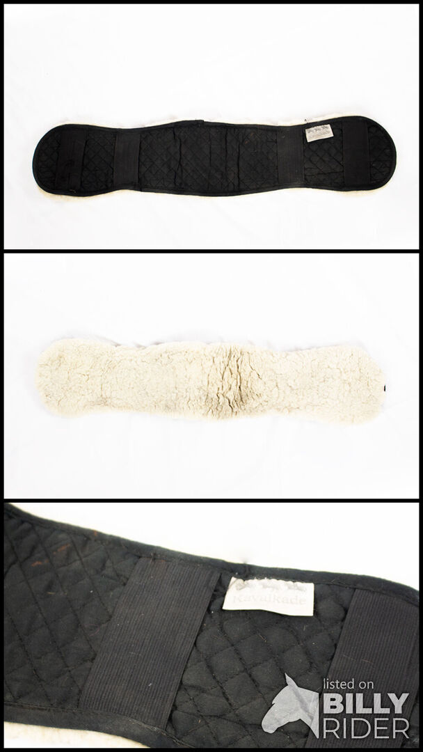 Kavalkade singelbeschermer met lamsvel 75cm - De superzachte Kavalkade singelbeschermer biedt optimaal comfort op de buik van het paard. De beschermer beschermt de singel optimaal en is zeer zacht op de buik. Perfect voor gevoelige en tere paarden. De onderzijde is van lamsvel en de bovenzijde van gewatteerde stof. De lamsvachtbeschermer is wasbaar op 30° C op het wolwasprogramma en moet altijd met lamsvachtwasmiddel worden gewassen. Het heeft 4 flexibele en brede elastische banden die de singelbeschermer optimaal op de singel houden en voorkomen dat hij verschuift. Het heeft algemene sporen van gebruik.