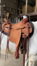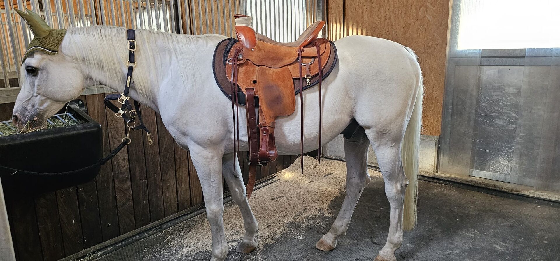 Kenner-Store Equiflex Dames Allrounder Zadel maat 16 - Ik verkoop mijn geliefde westernzadel omdat mijn paard met welverdiend pensioen is gegaan. Het is een Equiflex speciaal zadel "Dames Allrounder" - ongeveer 60/61 cm lang - Nieuw Castano Ruw uit - Vork, Cheyenne Roll en stijgbeugels glad leer. - Zitleer nubuck bruin - Spatbord uitgedraaid o.B. - Keurmerk dubbele lijn o.B. Zitmaat 16 10 jaar garantie op zadelboom en afwerking