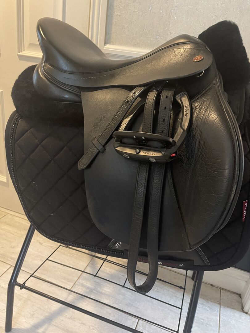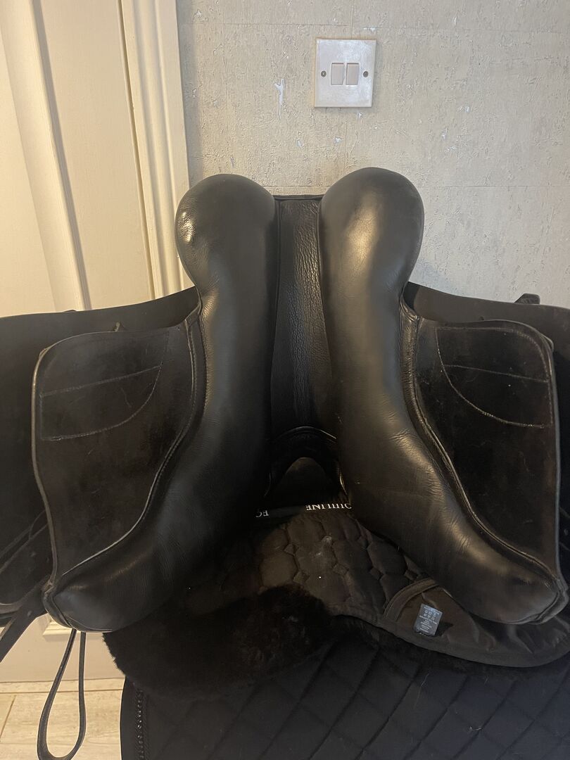 This saddle will suit you if you prefer to concentrate on flatwork, dressage and hacking instead of jumping. It has a generous seat for riders who like the feel of ‘more room’ in the seat, or if you are slightly wider in the hips. All Kent & Masters saddles share the features below. This S-Series Universal GPD benefits from superior craftsmanships and higher specification design details for a truly luxurious feel and appearance. It also features the following details: A straighter cut panel and longer flaps than the Universal GP, to accommodate the longer leg position required by dressage and flatwork. A generous panel with a good bearing surface, and wide channel for spine clearance. Full length, generous front gussets While this saddle has a standard-wither gullet depth, it offers a very universal fit for a variety of conformations. A wider, flatter seat, ideal for the fuller figure. Velcro knee and calf blocks under the flap which can be positioned to suit your leg length and position. Ghosted stitching on the knee pad helps it contour neatly around the block and ensures added comfort. Changeable girthing arrangement which allows saddle stability to be optimised instantly SADDLE ONLY, NOT THE STIRRUPS, PADS or LEATHERS