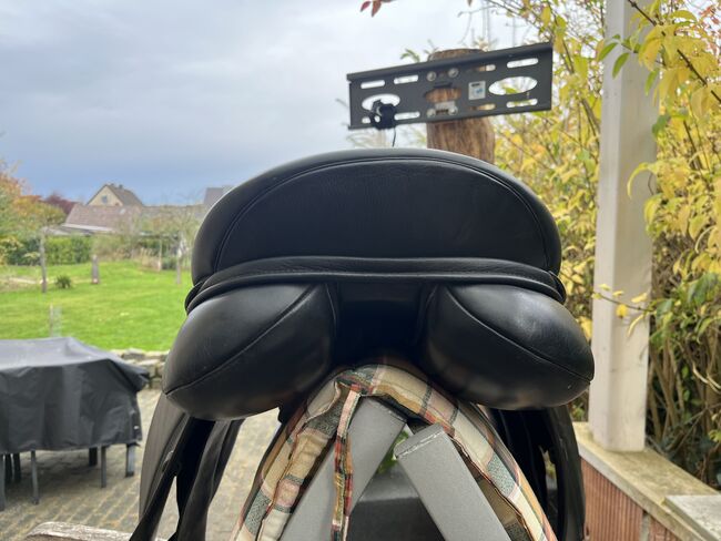 Afmetingen: - royaal 18" - eerder 18,5" - zit (hemelsbreed 44cm van voor naar achter) - Steun op de paardenrug ca. 46cm. - Kamerhoogte ongeacht welke slokdarmplaat gemonteerd is: 8cm